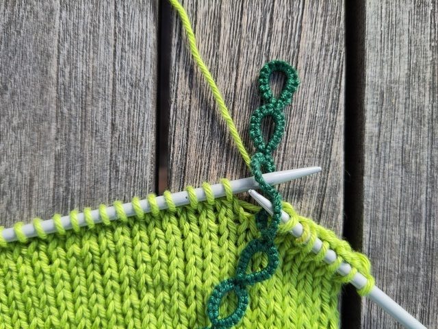 (Für dickere Nadeln, erhöhe die Anzahl der Doppelknoten.)