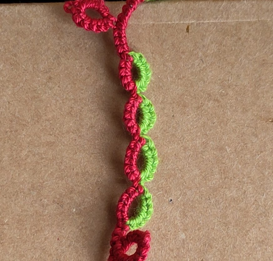 Ich liebe geteilte Ringe und verwende sie sehr gerne in meinen Anleitungen wie z.B. dem Reihenzähler oder der Blumenborte Vesna. Sie bieten zusätzliche gestalterische Möglichkeiten und sind dazu noch ganz einfach zu machen. Wenn Du schon weißt, wie man einen einfachen Ring macht, beherrschst Du alles, was nötig ist um einen geteilten Ring zu knoten.
