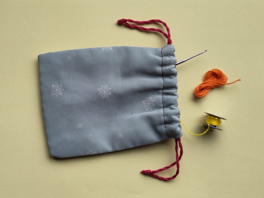 Unterwegs arbeite ich nicht gerne mit spitzen Nadeln. Die Fäden vernähe ich daher zu Hause.